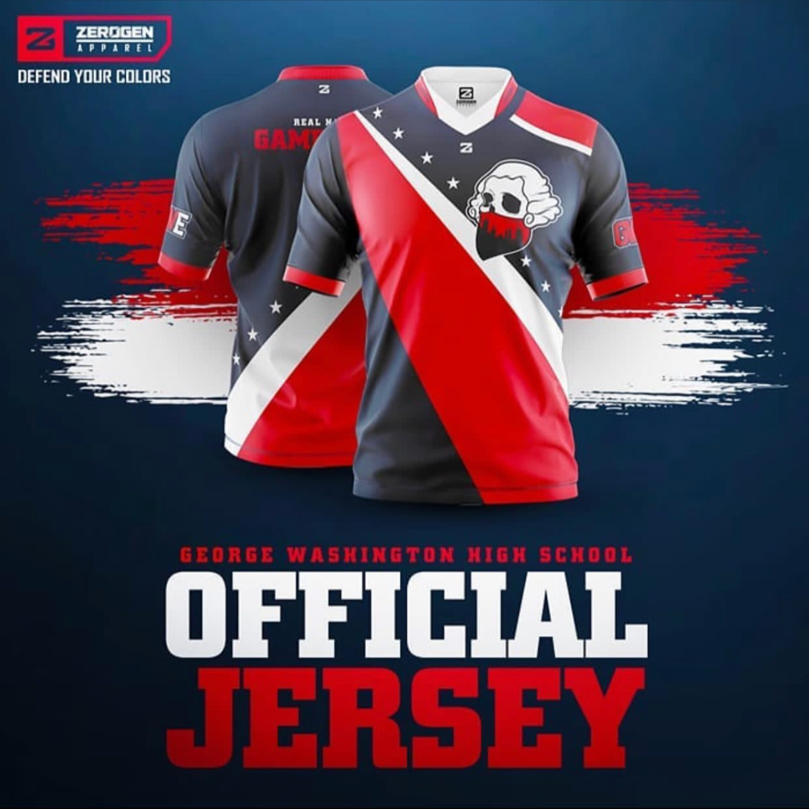 In a freelance partnership, George Washington High School coaches contacted me when they needed event posters, commemorative jersey illustrations for graduating seniors, and jersey designs for newer sports like Girls Flag Football and Esports.